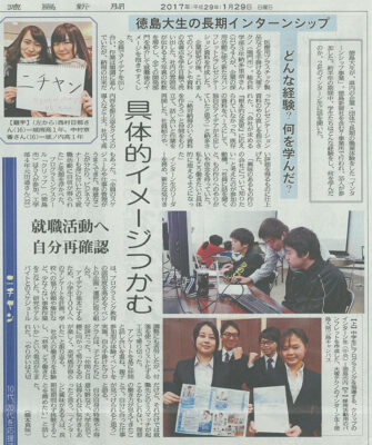 徳島新聞ニチヤンで徳島大学とのインターンシップの取り組みが紹介されました。