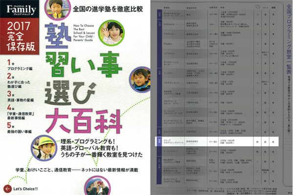プレジレントFamily「塾習い事選び大百科2017 完全保存版」でクリップ プログラミングスクールが紹介されました。