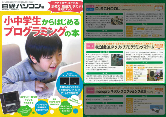 日経BPパソコンベストムック「小中学生からはじめるプログラミングの本」でクリップ プログラミングスクールが紹介されました。