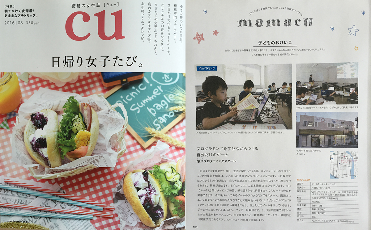 『CU(キュー)8月号』にてQLIP プログラミングスクールの「ゲームクリエーターコース」が紹介されました。