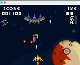 内容:スクラッチで制作されたシューティングゲーム作品。敵からの攻撃を避けながら、撃破していく懐かしさのある作品。